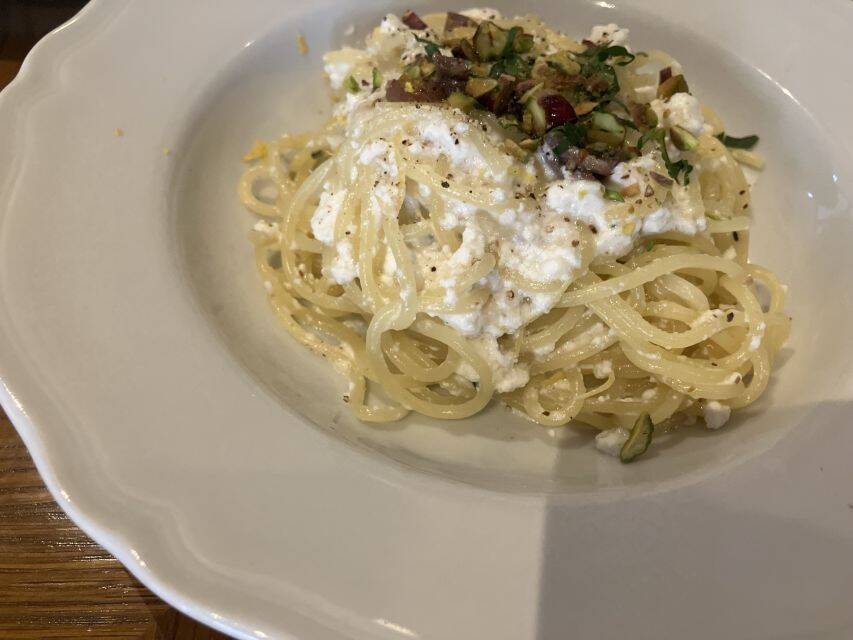 母の「リコッタ、アンチョビとレモン カンボジア産生胡椒」。1日限定10食、美味しそう♪